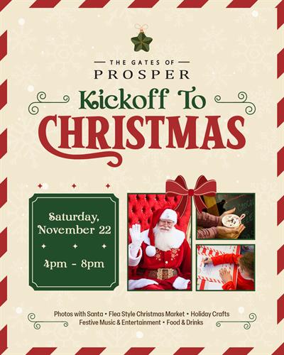 It’s the most wonderful time of the year—join us as we kick off the holiday season in Prosper! Our Second Annual Kickoff to Christmas is back at The Gates of Prosper, bringing festive fun for the whole family. Enjoy magical moments, holiday shopping, entertainment, and all the sights and sounds of the season.